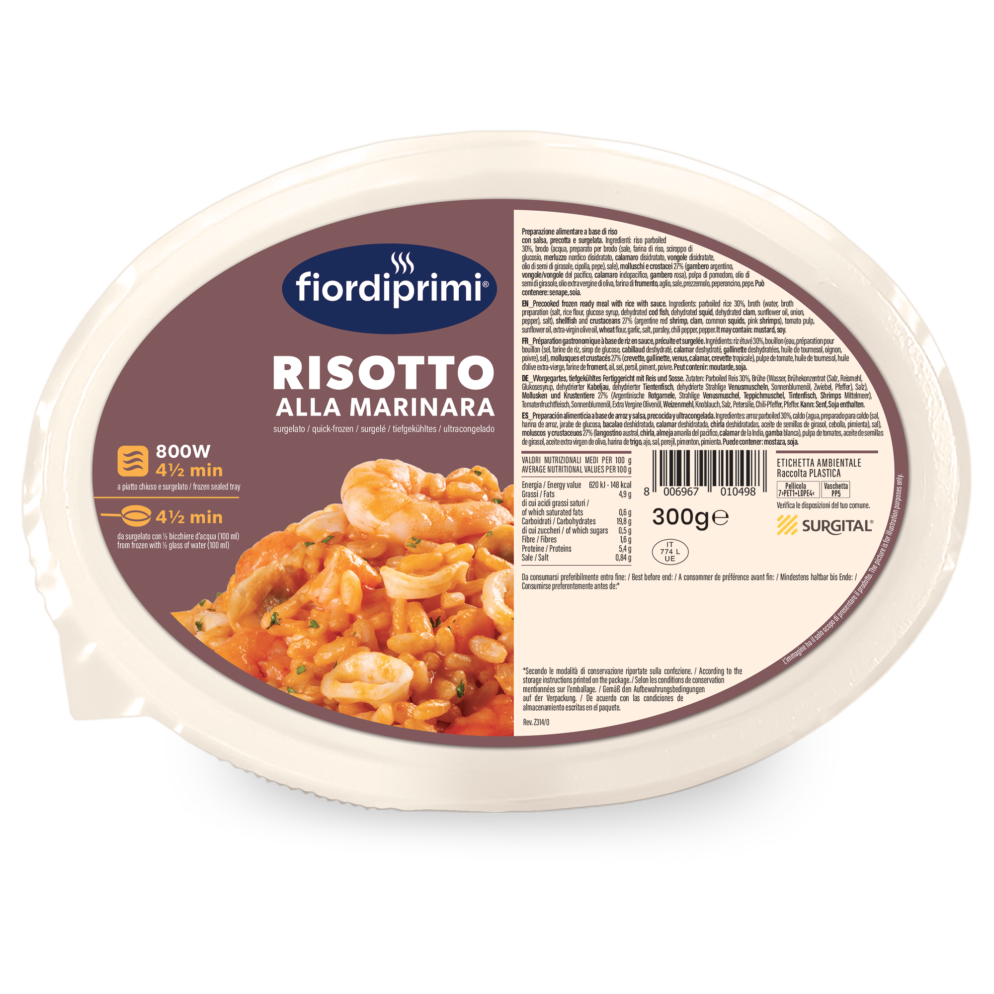 Seafood risotto in a delicate, Mediterranean-style sauce. Weight 300grams