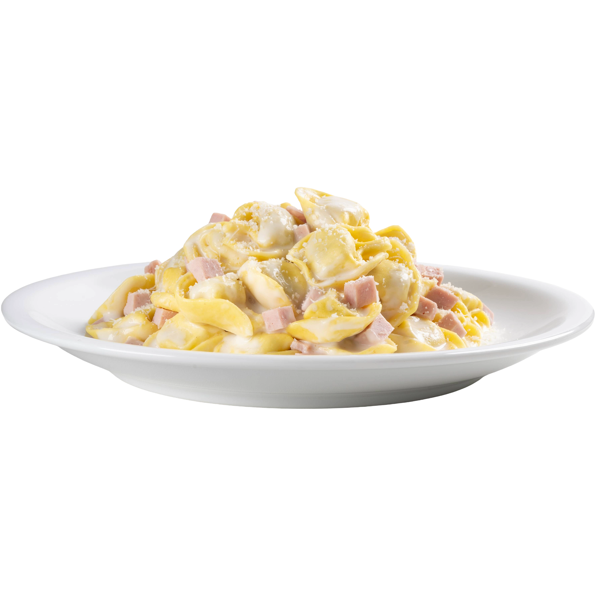 Tender tortellini filled Bolognese-style, served in a creamy sauce with ham.